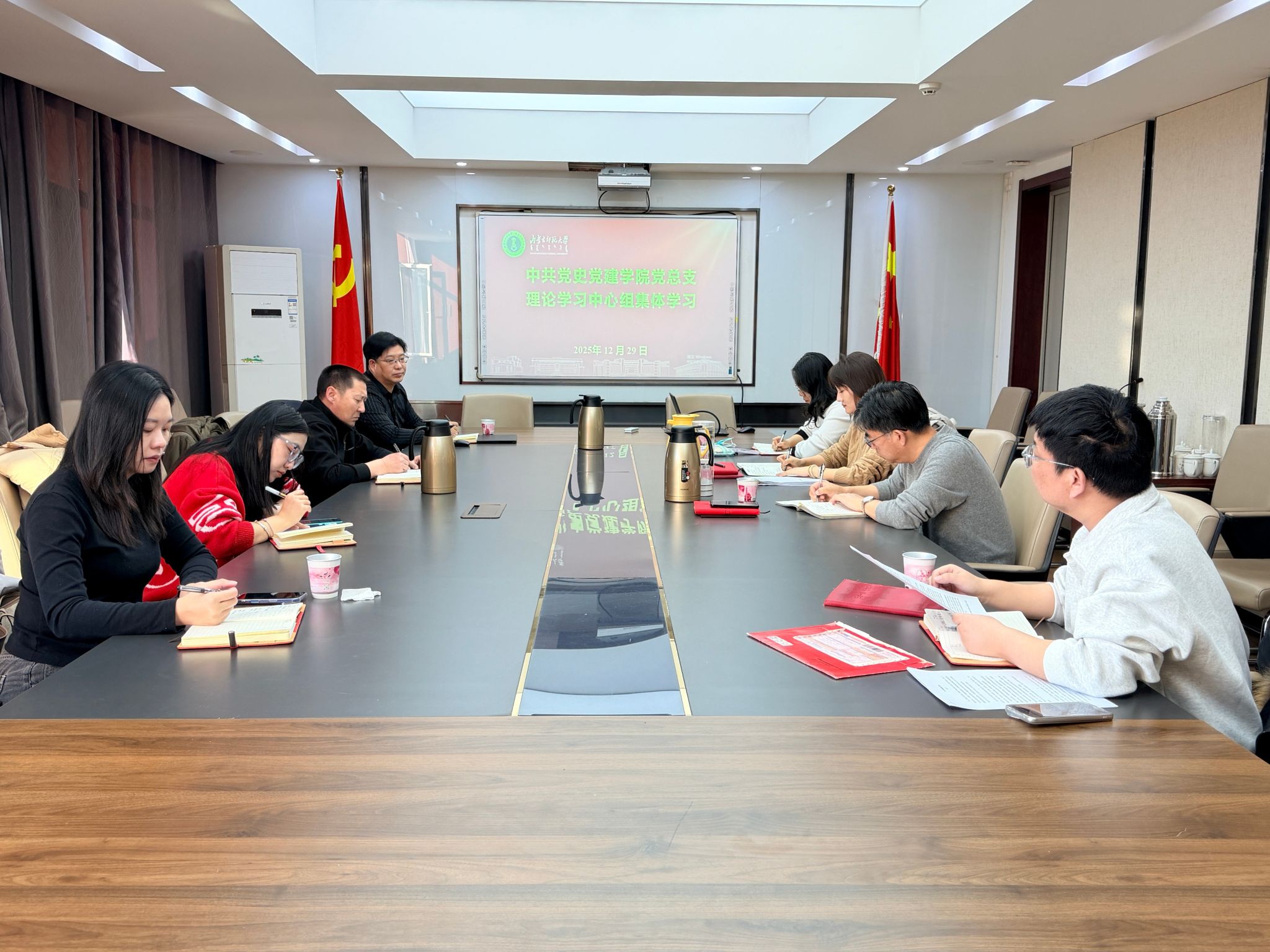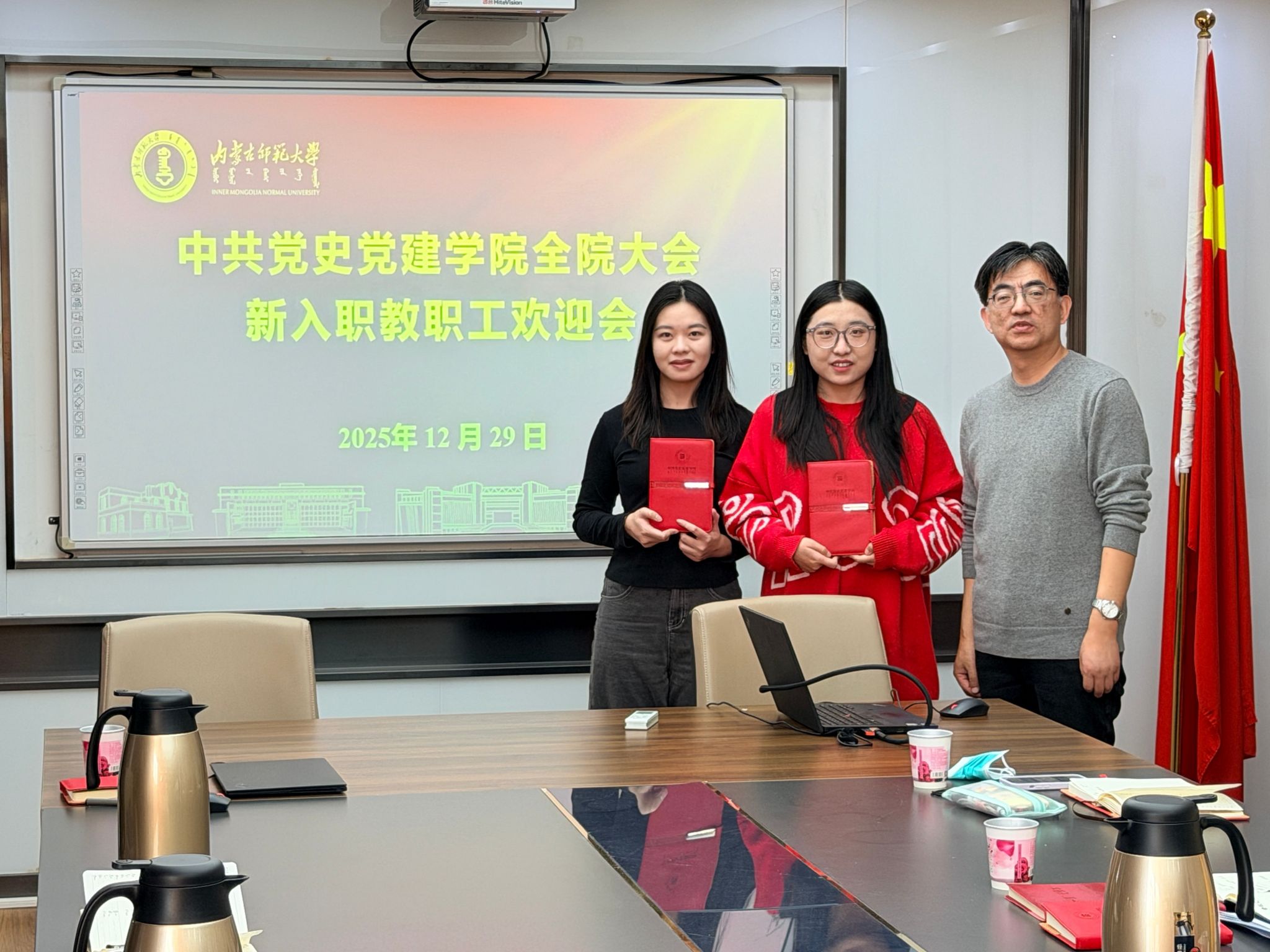 2025年12月29日下午,学院召开全体教职工大会。会议首先举行了简朴热烈的新入职教职工欢迎仪式,随后开展了2025年度考核工作,并召开了学院党总支理论学习中心组集体学习会,会议由张瑞军院长主持,全体教职工参加会议。